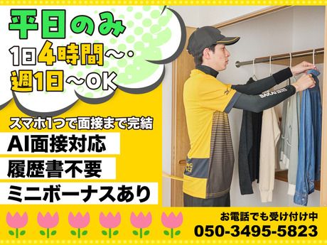 職種/仕事内容 | 仕事内容 ☆☆☆ バイトデビューにピッタリ! ☆☆☆ お客様のご家財を2~5名のチームで運びます。 はじめは軽い段ボールを運んだり、 建物内の養生(ブルーシートを貼る)など、 カンタンな軽作業からスタート。 重いご家財については複数名で運ぶので、 未経験の方も安心ですよ◎ ☆☆☆ 好きな時に働けます♪ ☆☆☆ シフトは働きたい日の【前日12時まで】に、 スマホで申請して決定します。 「明日、予定が空いちゃった…」 「来週飲み会だから稼がなきゃ…」 そんな時にスグに働けます◎ 週1回だけ、月に数回だけ、短期間だけ…等、 自由に働き方を選択できますよ♪ ☆☆☆ 未経験の方でも安心な充実した研修あり◎ ☆☆☆ 初日は自社の研修施設にて、 仕事の流れや実際の仕事イメージをつかむためのレクチャーを 2時間ほど受けていただきます! 制服の着用方法から資材説明・段ボール・包み方等の レクチャーもしっかりおこないます◎ |