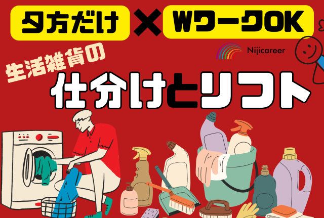 【WワークOK】【1日5時間だけ】【夕方から勤務】 ≪派遣≫でお仕事探すなら”ニジキャリア” ★日払い/週払い即日可能!入社当日からOK!給料最大80%までのお支払い/今月ピンチ!今日の生活が苦しい!!アットホームな会社だからできる即日対応 ★昇給制度/モチベーションUP♪勤務状況や態度に合わせ、ベースアップの実績多数 ★Google評価4.0/女性営業多数在籍/スタッフのアフターフォローの徹底/あなたに合う仕事を徹底リサーチ ★提携グランピング施設多数/大型飲食チェーン店などのお得クーポン/最大400円割引などを配布中! ★お友達紹介キャンペーン実施中/最大1万円もらえるチャンス/お友達が入社確定後から支給