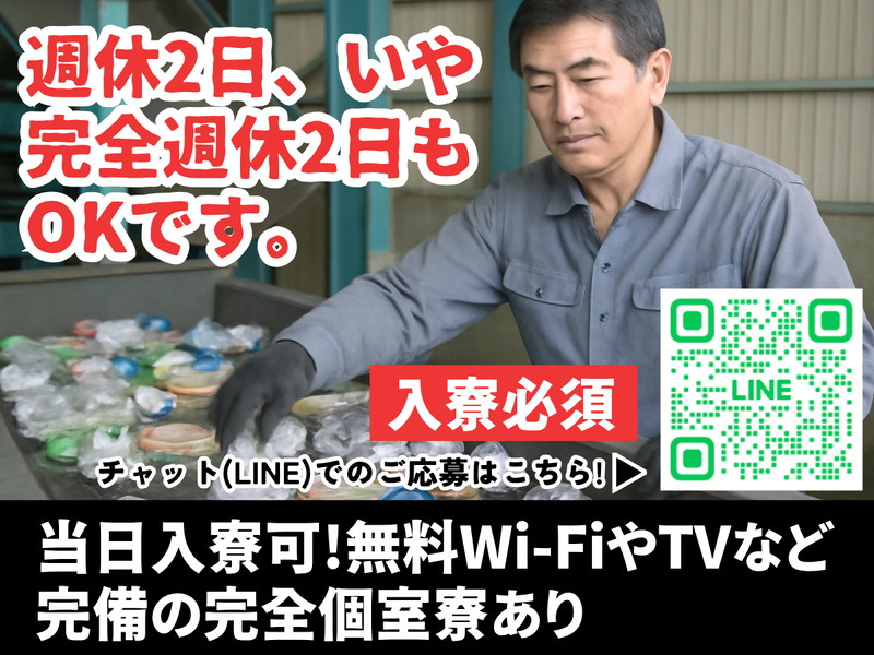 職種/仕事内容 | 仕事内容 ※入寮必須※設備は無料で使用可能! ■お電話での応募はこちら■ ⭐TEL:0120-310-002(田中まで) ⇒フリーダイヤルなので通話料無料! ■LINEでのご応募はこちら■ ⭐チャット(LINE)での応募はこちらから! https://lin.ee/xNtXdQQ ⭐電話(LINE電話)での応募はこちらから! https://lin.ee/oil5k19 ――――――――――――――――― 休み、マジで少ないんだよな… そんなあなたを救います。 ――――――――――――――――― ✅週休2日制!完全週休2日制も可能! ✅有給も5日以上しっかり消化可能! ✅電話1本で充実設備完備の寮に 当日に入れる ✅テレビや洗濯機、エアコンなど すべて無料で使用可能! ✅会社に大浴場やパチンコ・スロット などの娯楽も完備! ✅寮費&手作り食事1ヶ月無料 or入社祝金8万円支給が選べる! ✅現金をその場で手渡し日払い可能 ✅履歴書不要 ✅「短期で働きたい」もOK! ※最短勤務日数:1ヶ月~ \美希産業のココがすごい!/ ⭐従業員への嬉しい還元⭐ □暑い中働く従業員さんに対して、 空調服とセットで使用すれば、 更に涼しい「ペルチェベスト」 という冷却ベストを貸出し中! □年に2回、費用会社負担で 焼肉や食事会を行ったりなどもあり! ⭐有給休暇しっかり消化可能!⭐ 法令に則り、きちんと5日以上消化可能! 休みを取って釣りやパチンコなど お出かけしてリフレッシュも 可能ですよ! ⭐寮の設備は全て無料⭐ 大浴場や、エアコン、テレビなど 充実の設備はぜーんぶ無料で使えます! そしてなんと、「パチンコ」まで完備! ─────────────── フリーダイヤルなので通話料無料! お気軽にお電話ください! TEL:0120-310-002(田中まで) ─────────────── 当面の寝床、食事、お金は 美希産業にお任せ★ ────────── 住む場所GET ────────── 漫喫生活から脱却だぜ! ⭐電話1本で当日入寮OK!⭐ 完全個室です! ✅超快適な寮を完備! これらの設備はぜーんぶ無料で使用OK! - □無料Wi-Fi□エアコン□冷蔵庫 □テレビ□洗濯機□乾燥機(コイン不要) □大浴場あり <ここがポイント!> ・清掃員がいるため、共用部は常に清潔! ・大人気!スロットなどが楽しめる ゲーム機もあり! 契約が切れて寮を出なきゃ… なんてこともなし!お手持ちの携帯や、 公衆電話からのお電話で今すぐに 寮に入れます!※規定あり ────────── 食事GET ────────── 手作りご飯なんていつぶりなんだ… ⭐手作りごはんあり!⭐ おかわり自由で、メニュー数も豊富! ────────── 給与GET ────────── 久しぶりに万札を見たぞ… ⭐現金手渡し日払い可能!⭐ 仕事が終わったら、毎日その場で 現金を手渡しできます! カツカツ生活とはオサラバ! ────────── さらにGET ────────── どっちも魅力的すぎる… ⭐選べるキャンペーン実施中!⭐ ①寮費&手作り食事1ヶ月無料 ②入社祝金8万円支給 ※ともに規定あり ─────────────── とりあえず仕事をくれ… そんな時こそ美希産業へ! ─────────────── せっかく入社したはいいけど、 仕事がなくて全然稼げん… ⭐そんな心配は一切無用!⭐ 当社は、東海三県でトップクラスの 規模を誇る会社。 この業界の仕事は『減少している』と 言われている今、美希産業では 大手ゼネコンから直接仕事をもらっている ため、仕事量も超豊富! 年間約100件の 安定した仕事量を獲得できています。 仕事がなくて、結局カツカツ生活… なんてこともありません! ■仕事内容■ 廃棄物を地面に落として広げ、 その中から拾い集める作業や ベルトコンベアから流れてくる 廃棄物を選別する作業 会社へは、名古屋駅からタクシーで 来社可能(事前相談) ✅短期で働きたい方も歓迎! ※最短勤務日数:1ヶ月~ ─────────────── 仕事がなくて、今のままでは 生きていけないからとりあえず お金を稼げるところに行きたい 次の安定した職を見つけるまで とりあえず働きたい そんな方の短期での勤務も歓迎! |