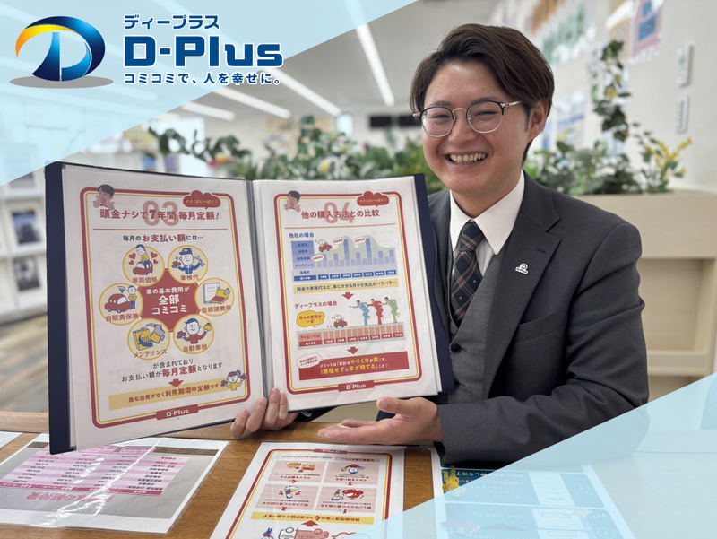 職種/仕事内容 | 仕事内容 なんと月給40万円スタート! 20代でも30代でも平等に40万円です! 学歴・経験・資格は一切不問! 今波にのっている車のサブスクを あなたの力で広めていきましょう~ ――――――――――――――――― 安い&分かりやすいカーリース事業で 売上急成長中の「ディープラス」が 新車のカーリース営業を大募集!! ――――――――――――――――― \先輩が「ディープラス」を選んだ理由/ 【 知名度&急成長してる! 】 ・安くて分かりやすいサービスで売上右肩上がり ・「新車の軽が5000円♪」のフレーズで知名度抜群 ・平均年齢28歳!若手が第一線で活躍中! 【 営業未経験でも売りやすい! 】 ・飛び込み営業なし!100%来店型営業 ・接客マニュアル「アプローチブック」あり ・学歴・転職回数不問!人柄重視の採用 【 中途入社でもガッツリ稼げる! 】 ・前職給考慮(源泉徴収票が必要です) ・初めてのご来店日に成約される方が半数以上! ・年収700万円も可能! 【 プライベートも大事にできる! 】 ・有給取得推進(通常休みと合わせて4~5連休可) ・残業月10~20時間程度 ・えるぼし認定(女性活躍推進企業) 学歴・経験・資格は一切不問! さまざまな経歴を持つ先輩社員が、 未経験から高収入を手にしています! あなたも後に続きませんか? (具体的な仕事の流れは↓↓をチェック!) 入社1年後に見直しを行い、給与額を正式決定します! さらに昇給のチャンスもあり! そして2年目以降は業績を上げた分給与アップする \ 100%反響!カーサブスク営業の進め方 / 【1】商談 お客様のニーズをお聞きすることからスタート。 ライフスタイルや家族構成などをもとに、 最適な車種をご提案していきます。 ↓ 【2】契約 カーナビゲーションや任意保険、 その他オプションについても丁寧にご説明し、 ご納得いただいた上で契約手続きを進めます。 ↓ 【3】納車 お客様にご来店いただき、 待ちに待った新しい車をお渡しします。 改めて車の特徴や操作方法などを説明し、 安心して運転できるようにサポートします。 ↓ 【4】メンテナンス オプションでメンテナンスを 契約していただいたお客様には、 点検や車検などのアフターフォローを行います。 |