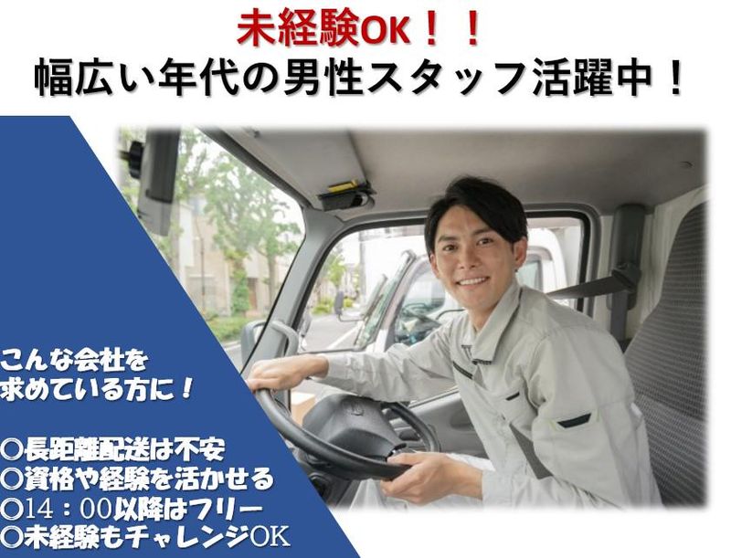 職種/仕事内容 | 仕事内容 自分の時間や家族との時間を 大切にしてもらうために 14時迄勤務&週休2日可! 長期休暇も有☆普通免許で始められます! 【仕事内容】 毎日同じルートを回ります! 1度道を覚えてしまえば後は スムーズに配送できます◎◎ ホテルへのリネン類のルート配送で、 荷物は軽貨物なので 2tトラックでの配送となります。 配送先は主に都内や埼玉県内で 長距離配送がないので安心です◎◎ 充実した研修制度があり、 初めは先輩が同乗して ルートを教えてくれるので 安心して覚えられます。 前職も営業や工場作業員など様々。 未経験スタートの先輩が活躍しています! |