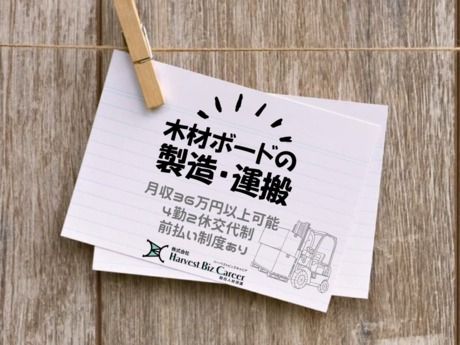 職種/仕事内容 | 仕事内容 \*◆主な作業内容◆*/ 家具や建物の建材に使用されるパーティクルボードの製造工場でのお仕事です! ・機械操作で木製ボード製造、フォークリフト(カウンター)での運搬 ・製品製造業務 木の廃材などを機械に投入、機械操作、機械のメンテナンス(不具合発生時)等 <人員増のための追加募集です!> 工程のほとんどは機械が行ってくれるので、難しい操作はございません! 最初は先輩がしっかりサポートしてくれるので安心してお仕事スタートすることができます☆ 機械操作経験者、フォークリフトの免許お持ちの方必見! 交代勤務で稼ぎたい方はぜひ必見です♪ 長期安定のお仕事★ 人気の長期案件なので早いもの勝ち!! <こんな方はぜひご応募ください!> ★モノづくりの流れを一通り理解できている ! ★人に何かを教えるのが好き! ★安定的な環境で、長くキャリアを築いていきたい! |