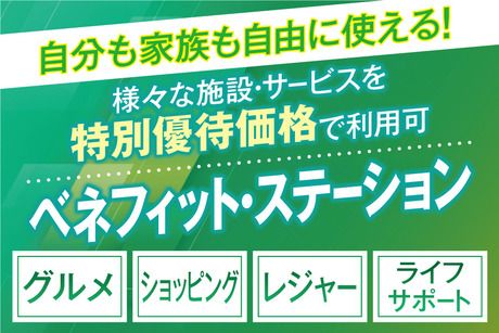待遇・福利厚生 | 【保険制度】 雇用保険、労災保険、健康保険、厚生年金 【福利厚生】 待遇・福利厚生 【福利厚生】 ・社会保険完備 ・交通費全額支給 ・週払いOK(規定) ・有給休暇 ・制服貸与 ・髪色自由 ・車通勤OK ・無料駐車場あり ・休憩室あり ・空調完備 ・紹介キャンペーン ※ご紹介くださった方1名につき6万円進呈(規定) 【その他福利厚生】 ・定期健康診断 ・キャリアアップ支援制度 ・ストレスチェックの実施 ・子ども手当あり ・結婚、出産、入学祝い金あり ・退職金制度あり ※各々、社内規定に基づく ★トーコーで働くと利用できる福利厚生サービス「ベネフィット・ステーション」! グルメやレジャー、ショッピングだけでなく 育児や介護などライフイベントに関わるものまで、 【約140万件以上】の各施設・サービスを特別優待価格にてご利用いただけます。 スタッフさんはもちろん、ご家族の方もお好きなだけ利用できます。 |