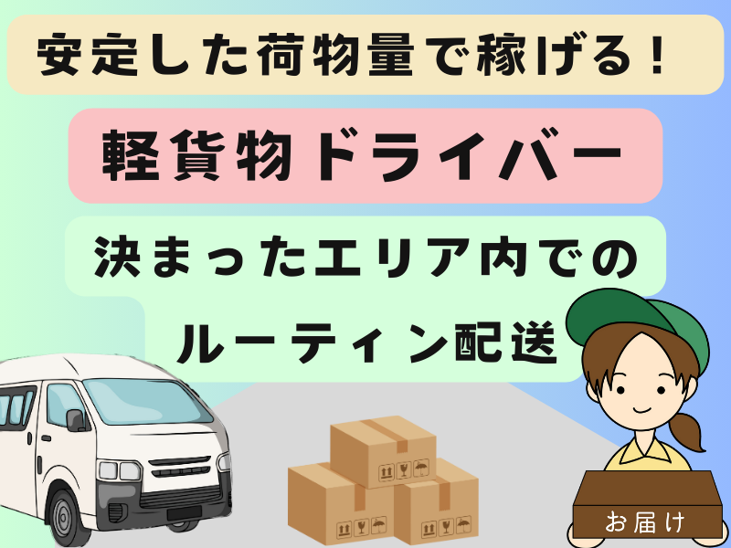 職種/仕事内容 | 仕事内容 \\自分のライフスタイルに合わせて働けるドライバー職!!// 「がっつり稼ぎたい」「一人で気ままに働きたい」など働く思いは人それぞれ! そんな願いを全て叶えられます!! 【ECサイトなどで購入された商品を個人宅やオフィスへお届けいただきます!】 荷物は一人で持てるような小さなサイズで軽いものが多いので、体への負担は少なめなので男女問わず活躍しています!! 未経験からチャレンジされる方が8割以上! いきなりやってみて!ではなく初日から数日は先輩が同乗ししっかりとした研修があります◎ また、中型車や大型車を使用することはないので、軽自動車しか運転したことないという方もご安心ください!! 〜仕事の流れ〜 (1)企業様指定の集荷場へ直行 ⇒ (2)指示された商品をピッキング ⇒ (3)指定先へ配送し納品 ※2~3回ほど集荷場で集荷を行います。 〜求人のポイント〜 ✅年齢・経験・学歴は一切不問 ✅週休2日制でプライベートも充実 ✅独立開業サポートあり お問い合わせお持ちしております! |
